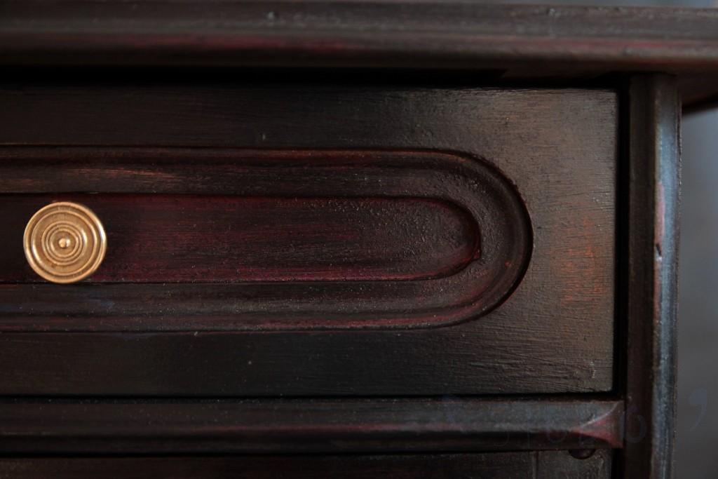 Mebel dostał ode mnie roboczą nazwę Paganini. I tak już zostało. Zainspirowany jest biograficznym filmem „Paganini: uczeń diabła”.Oglądałam ten film kilka razy. Zafascynowala mnie nie tylko muzyka Paganiniego w wykonaniu znanego wszystkim Davida Gareta, (który gra główną rolę w tym filmie), ale także dominujące kolory: czerń, granat oraz odcienie burgundu, bordo, czerwieni, złota i brązów. Czy mi się udało złapać klimat??? Farby, których użyłam to znów Nordic Chic od Metamorfoza Furniture Barbara Hansen. Te farby mówiąc kolokwialnie robią robotę!!! Czarność nad czarnościami (marność nad marnościami heh) – to przeczarny pociagnięty czarnym woskiem!!!